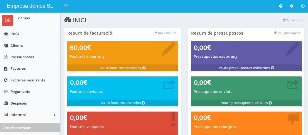 • Àrea de clients (veure pressupostos i pagar factures).